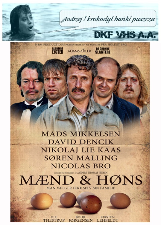 DKF VHS A.A. | "THE MAGIC SWORD" Film fabularny. U.K. 1901. Cz-biały. 3'. Niemy. Fantasy. Film fantasy w reżyserii Waltera R. Bootha, pełen magi i efektów specjalnych, goblinów, wróżek, czarownic, demonów.. Historia księżniczki i rycerza jej serca, który w obronie swojej ukochanej "ma broń i nie zawaha się jej użyć".. "THE MIRACLE OF FLIGHT" Film animowany. U.K. 1974. Barwny. 5'. Krótkometrażowy. Komedia. Film animowany Terrego Gilliama, w stylu tak doskonale znanych pózniej animowanych wstawek w "Latającym Cyrku Monty Pythona". "MAEND OG HONS" (Mężczyźni i kurczaki/Men & Chicken) Film fabularny. Dania/Niemcy. 2015. Barwny. 104'. Czarna Komedia/Dramat. Najnowszy film duńskiego mistrza czarnego humoru Andersa Thomasa Jensena, twórcy takich obrazów jak: Błyskające światła, Zieloni rzeźnicy, Jabłka Adama. W roli głównej Mads Mikkelsen. Duńska Akademia Filmowa - Nagrody: Najlepszy aktor drugoplanowy, Najlepsza charakteryzacja, Najlepsza scenografia. Nominacje: Najlepszy film, Najlepszy aktor, Najlepsza aktorka drugoplanowa, Najlepszy scenariusz, Najlepsze efekty specjalne, Najlepsze kostiumy.