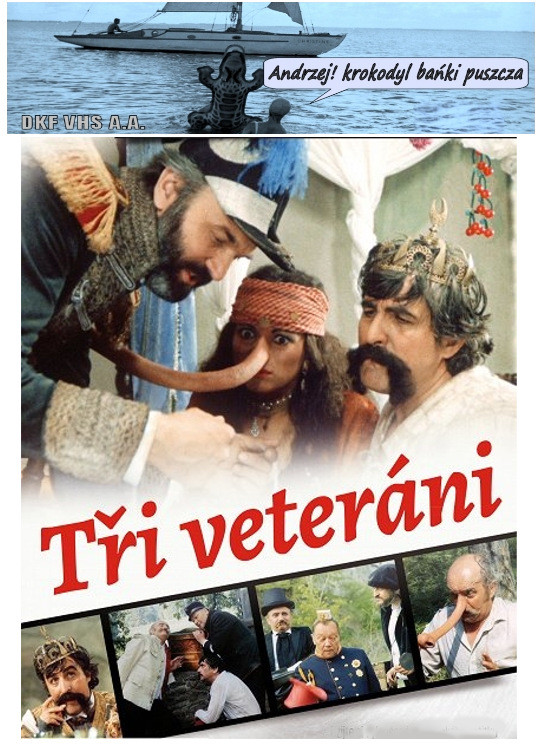 DKF VHS A.A. | "THIS WAY UP" (Tędy w górę) Film animowany. UK. 2008. Barwny. 9'. Krótkometrażowy. Czarna Komedia. Nominowana do Oscara animowana czarna komedia w reżyserii Alana Smitha i Adama Foulkesa. "TŘI VETERÁNI" (Trzech weteranów) Film fabularny. Czechosłowacja. 1983. Barwny. 93'. Komedia/Fantasy/Baśń. Baśniowa komedia w reżyserii czeskiego mistrza komedii i fantasy Oldřicha Lipskýego na podstawie opowiadania Jana Wericha. Trzech starych wiarusów, Pankracy, Bimbacy i Serwacy zostają odznaczeni i zwolnieni z armii. Podczas przystanku w lesie na nocleg, leśne skrzaty dają każdemu z żołnierzy magiczny przedmiot: harfę wzywającą sługi, bezdenną sakiewkę złota, kapelusz, który wyczaruje wszystko prócz ludzi i pieniędzy. Przed wojakami otwierają się nowe, wspaniałe perspektywy...