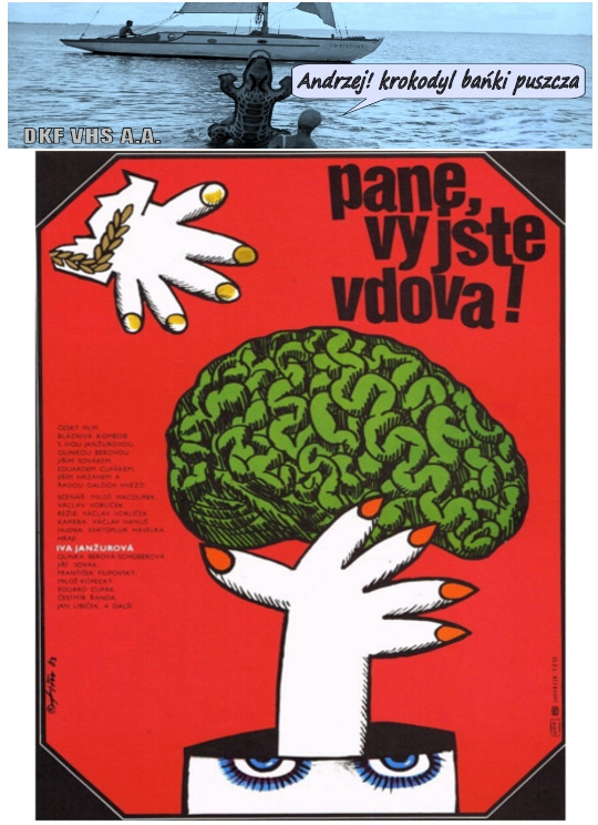 DKF VHS A.A. | "PANE, VY JSTE VDOVA!" (Jest pan wdową, proszę pana!) Film fabularny. Czechosłowacja. 1970. Barwny. 98'. Komedia/Sci-Fi/Groteska. Plejada gwiazd czeskiego kina, potrójna rola Ivy Janžurovej i piękna Olga Schoberová w doskonałej, groteskowej i absurdalnej komedii sci-fi w reżyserii twórcy "Jak utopić doktora Mraczka" i "Arabeli" - Václava Vorlíčka. W nieokreślonej przyszłości w pewnym państwie, króla Rozebunda V podejmuje kontrowersyjną decyzję o rozwiązaniu armii. Decyzja ta staje sie lawiną zdarzeń i absurdów. Beczka śmiechu, intrygi i spiski, eksperymenty medyczne, zamiany ciał i mózgów, obcięte ręce i głowy, absurd i surrealizm.