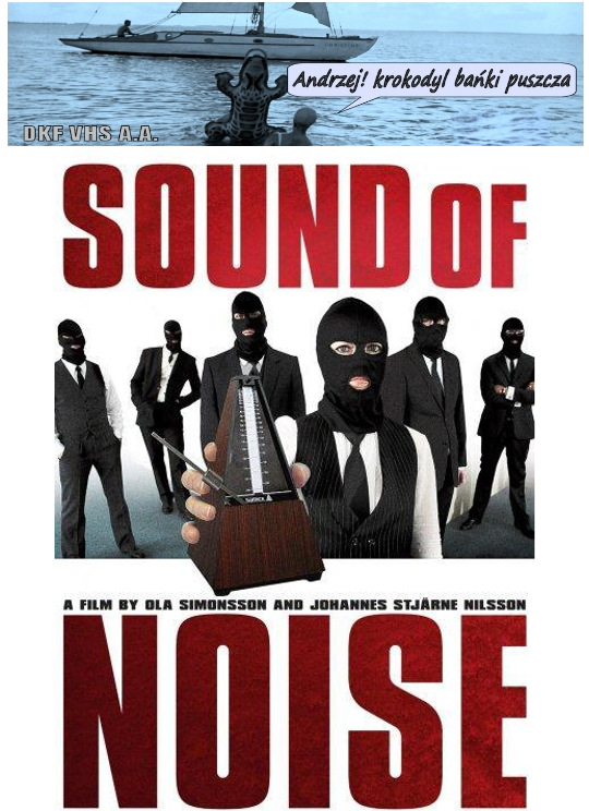 DKF VHS A.A. | "SOUND OF NOISE" (Nieściszalni) Film fabularny. Szwecja/Francja. 2010. Barwny. 98'. Komedia kryminalna/Muzyczny. Doskonała komedia kryminalna dwóch szwedzkich reżyserów Ola Simonssona i Johannesa Stjärne Nilssona. Niekonwencjonalnymi akcjami grupa perkusistów teroryzuje miasto, chcąc obudzić je z marazmu. Nagroda Publiczności i Nagr. Wolny Duch na Warszawskim Międzynarodowym Festiwalu Filmowym.