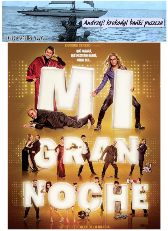 DKF VHS A.A. | "AUTOUR D'UNE CABINE" Film animowany. Francja. 1895. Barwny. 2'. Komedia. Film animowany stworzony przez Émila Reynauda, uważanego za ojca filmów animowanych. Tworzył je malując ręcznie rysunki na taśmie filmowej. Pokazywał je następnie publiczności na swoich pokazach. "MI GRAN NOCHE" (Ta noc jest moja) Film fabularny. Hiszpania. 2015. Barwny. 110'. Czarna komedia. Najnowsza komedia w reżyserii hiszpańskiego mistrza czarnego humoru Álexa de la Iglesia. Scenariusz napisany został przez reżysera wspólnie ze stałym współpracownikiem Jorge Guerricaechevarría. Tym razem Alex bierze "na tapetę" kulisy telewizyjnego show-biznesu... W jednej w ról głównych Santiago Segura. 4 nominacje Hiszpańskiej Akademii Sztuki Filmowej.