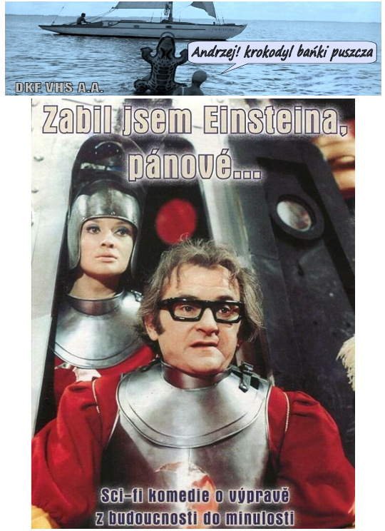 DKF VHS A.A. | "LES FROMAGES AUTOMOBILES" (The Skipping Cheese) Film fabularny. Francja. 1907. Cz-biały. 5'. Komedia. Star Film 925-928. Komedia w reżyserii Georgesa Méliesa, opowiadająca o dojrzewających serach tak śmiedzących, że zaczynają żyć własnym życiem i atakować ludzi... "ZABIL JSEM EINSTEINA, PÁNOVÉ" (Panowie, zabiłem Einsteina) Film fabularny. Czechosłowacja. 1969. Barwny. 95'. Sci-Fi/Czarna Komedia. Zwariowana komedia science fiction w reżyserii czeskiego mistrza absurdalnego humoru Oldricha Lipský'ego, znanego z obrazów: "Lemoniadowy Joe", "Tajemnica zamku w Karpatach", "Adela jeszcze nie jadła kolacji", "Trup w każdej szafie"... Po wybuchu bomby atomowej kobiety stają się bezpłodne i zaczynają im rosnąć brody. W czasie spotkania Narodów Zjednoczonych naukowcy dochodzą do wniosku, że jedynym rozwiązaniem jest podróż wehikułem czasu w przeszłość, aby zabić Einsteina, bez którego obliczeń matematycznych nie wynaleziono by bomby atomowej.
