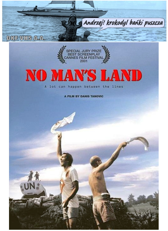 DKF VHS A.A. | "ULICA" Etiuda szkolna. Polska. 1964. Cz-biały. 5'. Etiuda dokumentalna. PWSTiF (Łódź) Etiuda szkolna w reżyserii Janusza Kreczmańskiego, z muzyką Piotra Marczewskiego. "NO MAN'S LAND" (Ziemia niczyja / Ničija zemlja) Film fabularny. Bośnia i Hercegowina/Słowenia/Belgia/Francja/UK/Włochy. 2001. Barwny. 98'. (Anty)Wojenny/Dramat/Czarna Komedia. Obsypany nagrodami debiut młodego bośniackiego reżysera Danisa Tanovicia. Rok 1993, wojna na Bałkanach. W okopie położonym między liniami frontu, na tzw. ziemi niczyjej "uwięzieni" zostają Bośniak i Serb. Powoli dociera do nich w jak absurdalnej znaleźli się sytuacji... Nagrody: Oscar, Złoty Glob, Złota Palma, Złoty Satelita, Cezar, Nagroda Publiczności na MFF w San Sebastián, Europejska Akademia Filmowa + 9 innych nagród i nominacji.