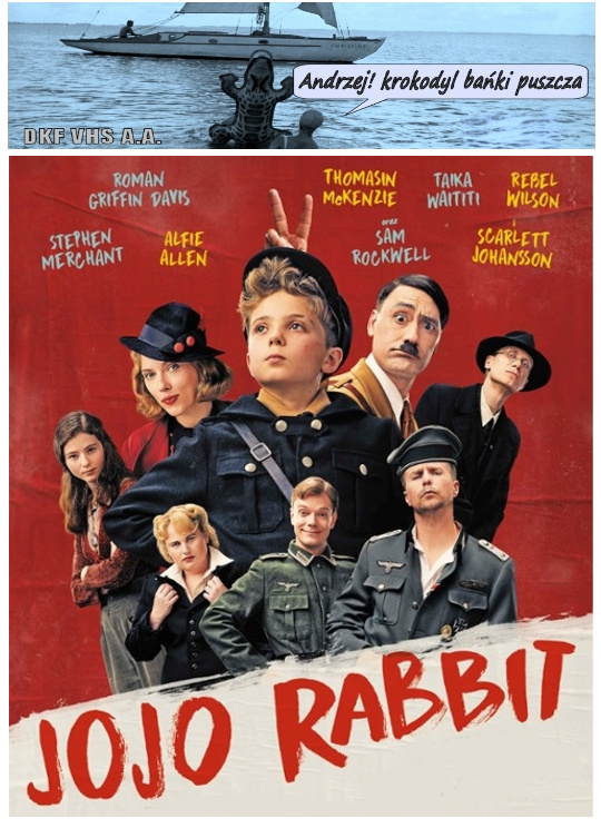 DKF VHS A.A | "JOJO RABBIT". Film fabularny. Nowa Zelandia/Niemcy/USA/Czechy. 2019. Barwny. 108'. Dramat/Komedia/Wojenny. Nagrody (49): Oscar, BAFTA... Nominacje (193): Oscar (5), Złote Globy (2), BAFTA (5), Satelity (2)...