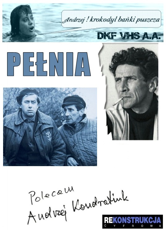 DKF VHS A.A | "PEŁNIA" Film fabularny. Polska. 1979. Cz-biały. 92'. Obyczajowy/Komediodramat/Poetycki/Psychologiczny. Rekonstrukcja cyfrowa. Zrealizowane 10 lat po pełnometrażowym debiucie, kameralne dziełko mistrza Andrzeja Kondratiuka. Ten wspaniały, klimatyczny, nastrojowy i niepowtarzalny film to jeden z najbardziej niedocenionych i zapomnianych polskich filmów. Po Rekonstrukcji Cyfrowej prezentuje się wspaniale. Doborowa obsada i wspaniała gra aktorska w wykonaniu: Tomasza Zaliwskiego, Janusza Gajosa, Tadeusza Fijewskiego (ostatnia rola), Romana Kłosowskiego, Igi Cembrzyńskiej, Anny Seniuk, Józefa Nowaka, Jana Świderskiego... Nominacja do Złotych Lwów.
