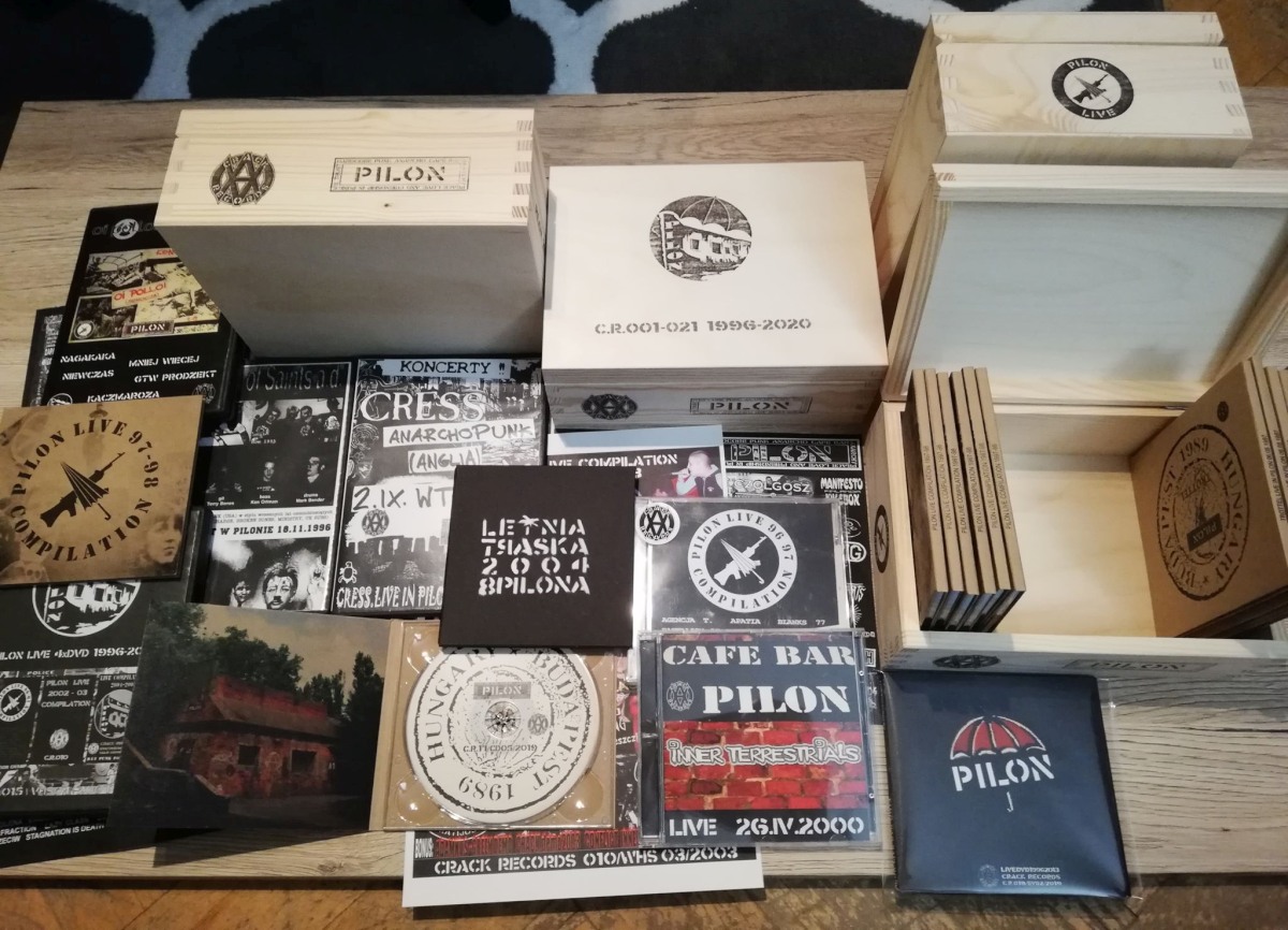 CRACK RECORDS | TROTTEL, BATTALION OF SAINTS, CRESS, INNER TERRESTRIALS, BIAŁA GORĄCZKA LETNIA TRASKA 2004 + 8 URODZINY PILONA (dvd) , PILON LIVE COMPILATION 1996 - 97 [Skład: AGENCJA T. (Toruń), APATIA (Poznań), BLANKS 77 (U.S), BATTALION OF SAINTS (U.S), CHWILA CISZY (Toruń), CONTEXT (Toruń), CRACK (Pilon), DEZERTER (Warszawa), EBOLA (Berlin), HOMOMILITIA (Łódż), KING PRAWN (U.K), LEUKEMIA (Węgry), PRAPHARATION H (U.S), SABOT (U.S-Czech), TROTTEL (Budapeszt), ŚWIAT CZAROWNIC & ROBI GOLDROCKER (Piła & Wa-wa)] , PILON LIVE COMPILATION 1997 - 98 [Skład: OI POLLOI (Szkocja), CRESS (U.K), MUTINY (Australia), BLOODSHOT (U.K), LA FRACTION (Francja), CONTEXT (Toruń), VECTORS (Szwecja), RECTIFY (U.K), CRACK (Pilon)] Wiecej tutaj: Crack Records