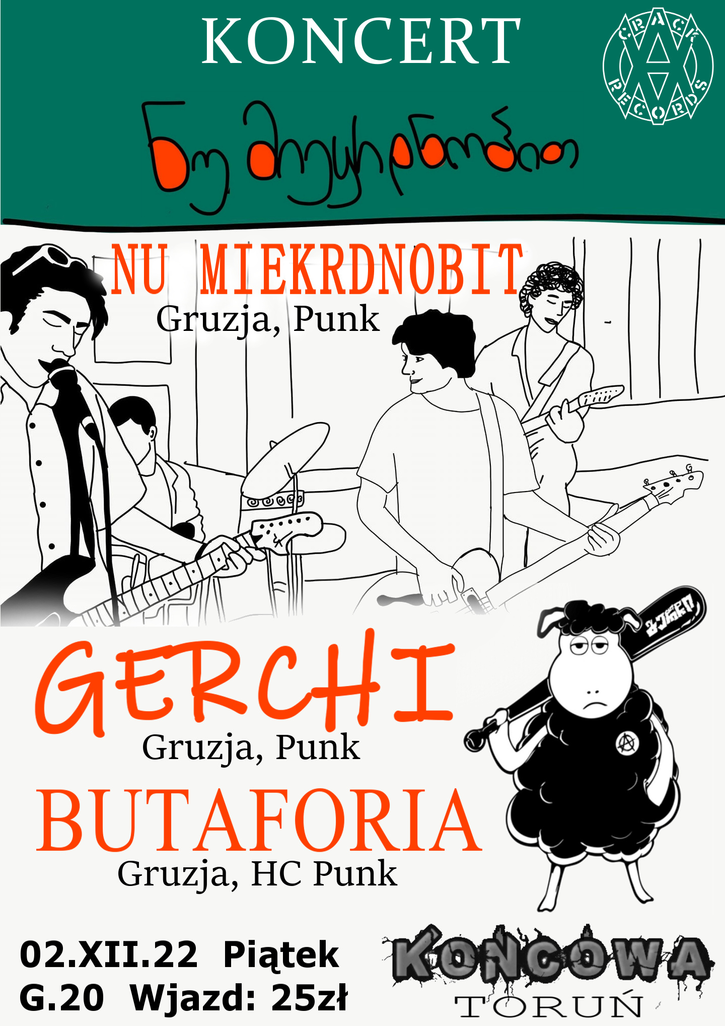KONCERT | BUTAFORIA (HC Punk, Gruzja) NU MIEKRDNOBIT (Punk, Gruzja) GERCHI (Punk, Gruzja) Wjazd: 25 zł.