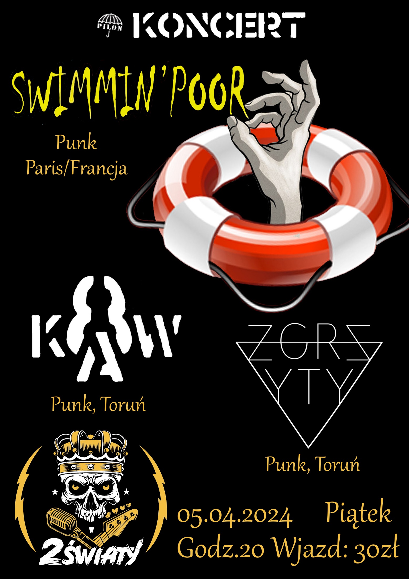 KONCERT | SWIMMINPOR (Punk / Paryż) 8 KAW (Punk / Toruń) ZGRZYT (Punk / Toruń) Wjazd: 30 pln