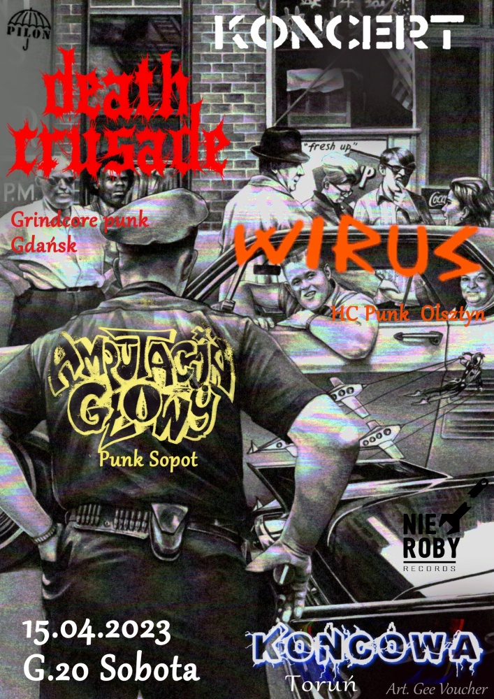 8 KAW (hc/punk z trąbą, Toruń) facebook.com/8kaw-1889860464625564 OREIRO (hard-core/punk, Zambrów/Wawa) facebook.com/OREIRO-752995661410274 ANTIDOTUM (hc/@punk, Warszawa) nnnw.bandcamp.com/jedna-plaga-ludzka-plaga OVERLOAD (brutal streetpunk/oi!, Cambridge/UK) overloadpunkoi.bandcamp.com/releases Imprezę po koncertach rozkręca znany i lubiany król pilonowego afteru, ściągnięty specjalnie dla was po wieloletniej przerwie, jedyny i niepowtarzalny: Don Kabano Czura !!! Wjazd: 15 zł. 20:58 2018.02.03- L |