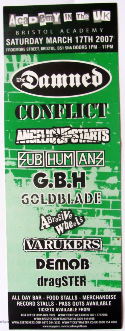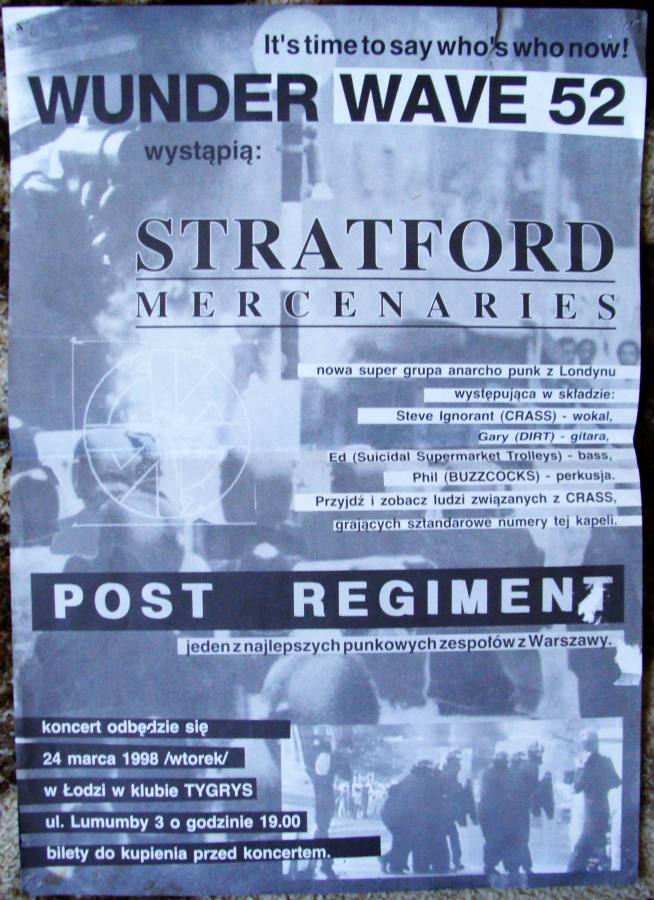 Conflict - "dawno, dawno temu w Bristolu.." Stratford Mercenaries pierwszy raz w Polsce - Łódz, 24.III.1998. Org. Wunder Wave Conflict, Icons of Filth, Varukers, Broken Bones, Sensa Yuma - 199? Londyn Steve Ignorant - The Last Super Tour - Łódz, 21.X.2010. Org. Wunder Wave Varukers na Zoro