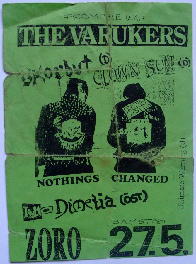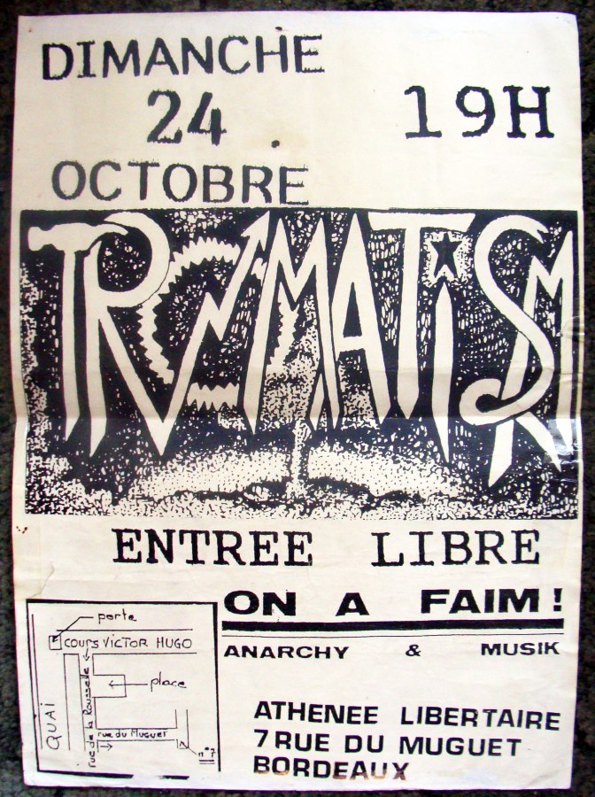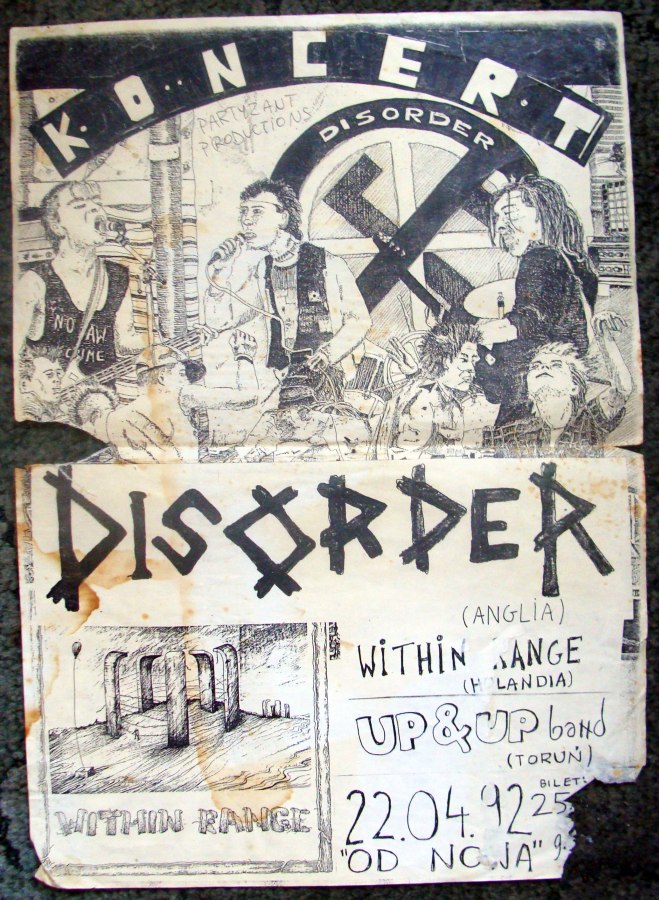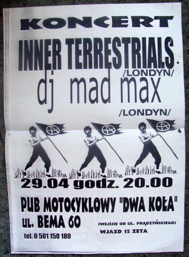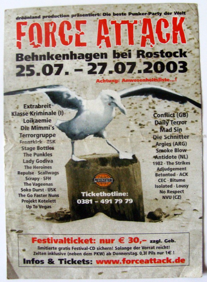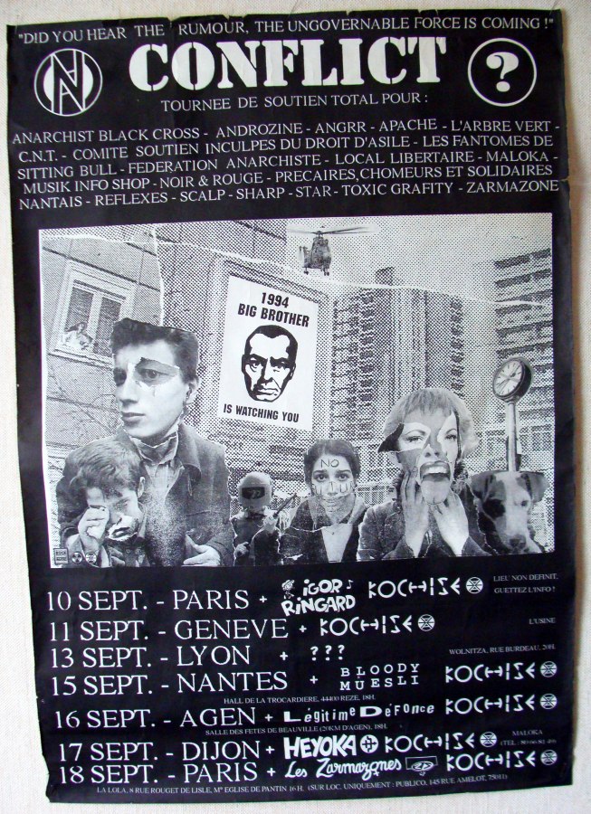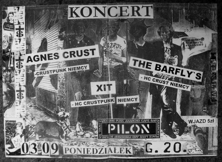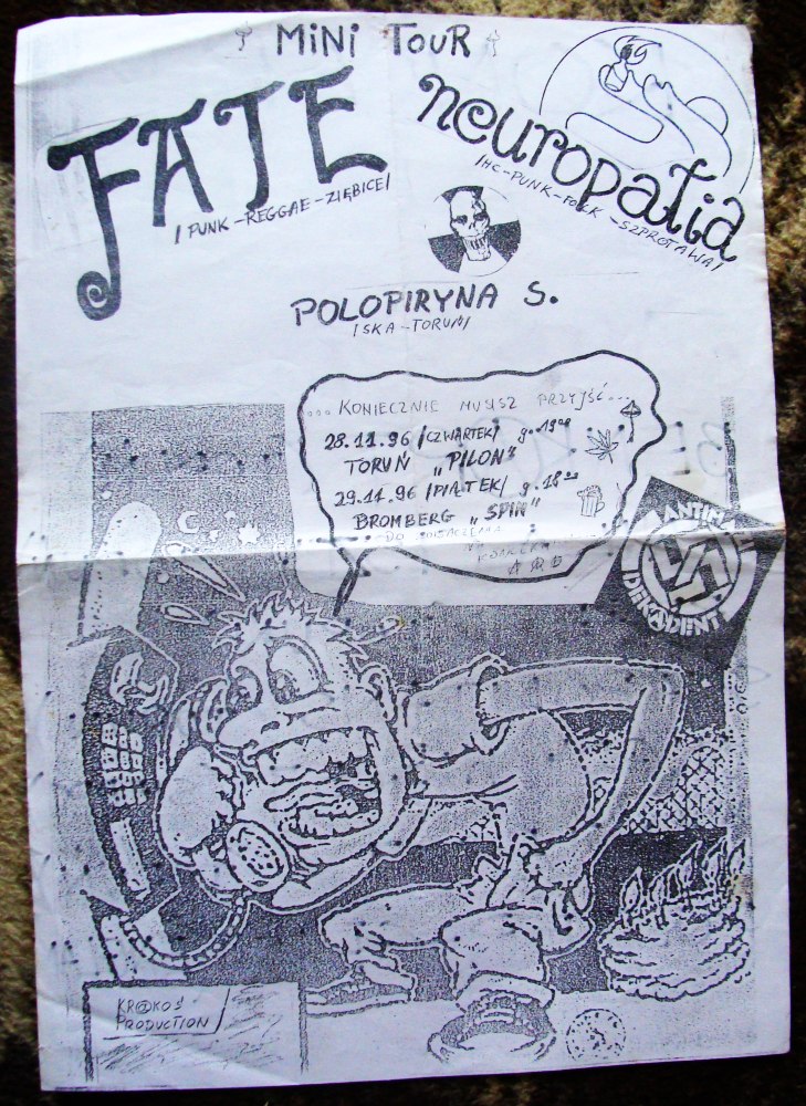 Flatpig, Restarts, Scum of Society w najstarszym anarchistycznym centrum - 121, Brixton, Londek Lord na Węglowej w Łodzi - 13.I.2001 Across the Decades 2000 - Conflict, Stefan Ignorant, Subhumans... - Milton Keynes (UK) Fate, Neuropatia, Polopiryna S - Pilon, mini tour 28/29.XI.1996. Org. Krakoś. Błażej dzięki za plakat. Wypad z Pepusem na Conflict na Force Attack - Rostock 2003