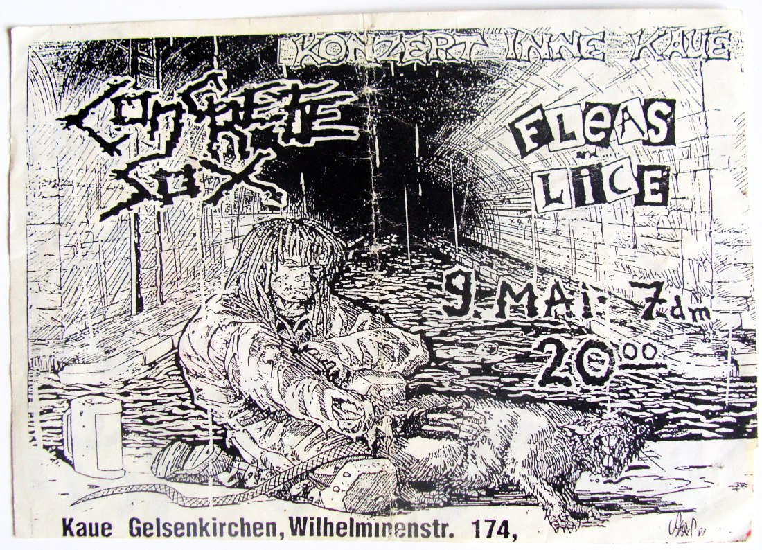 Ulotka - Varukers na Browarnej - 29.05.1995. Org. Levy & Lewy Production Concrete Sox, Fleas & Lice w Gelsenkirchen (Niemcy) Headjam w centrum anarchistycznym 121 - Brixton, Londyn