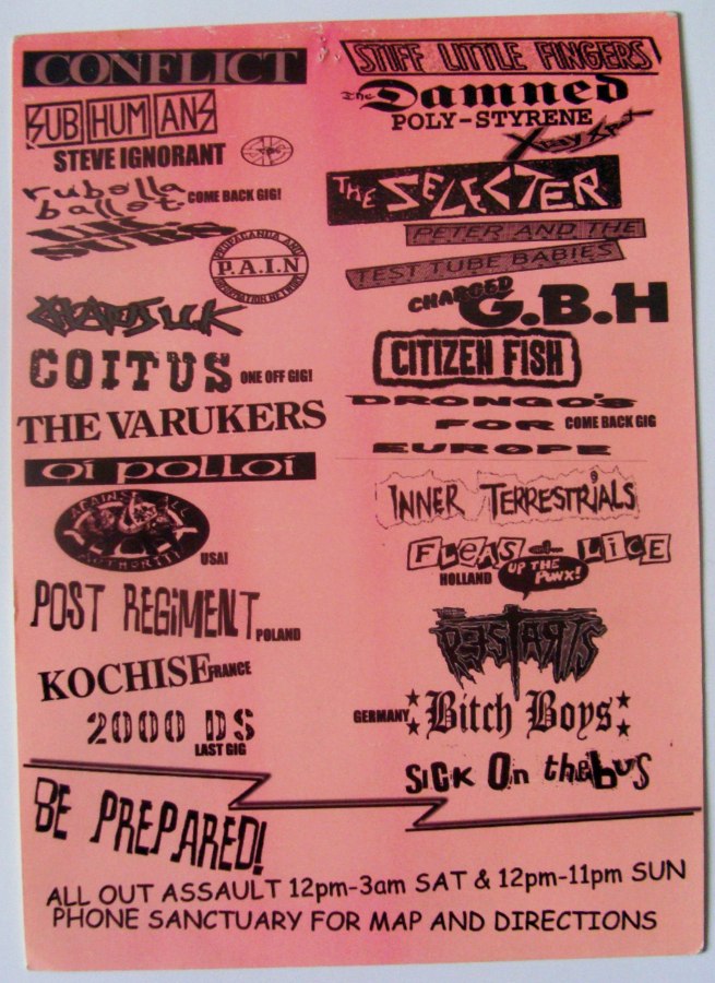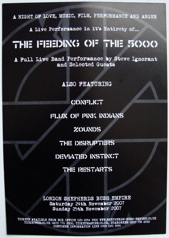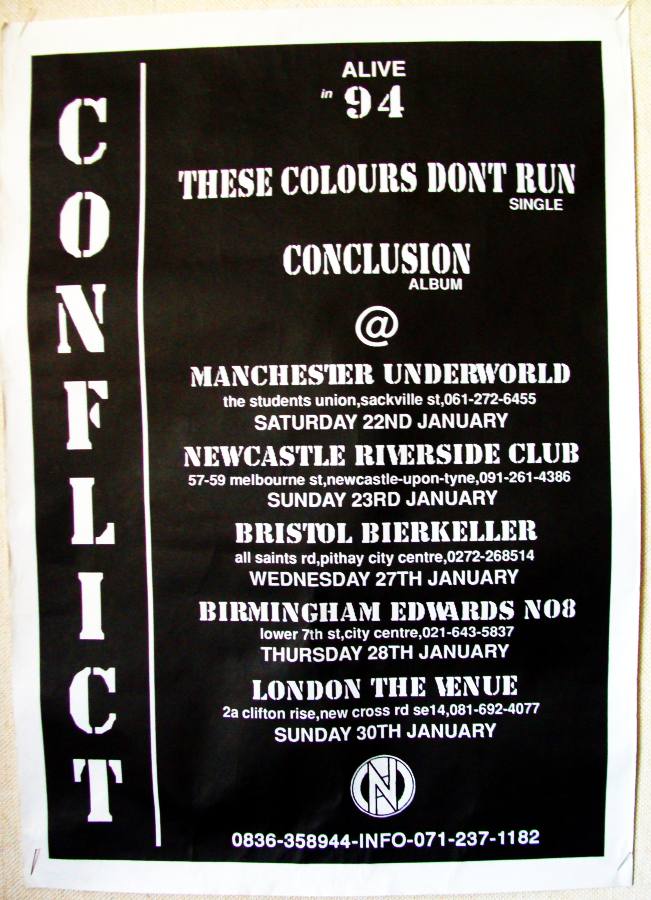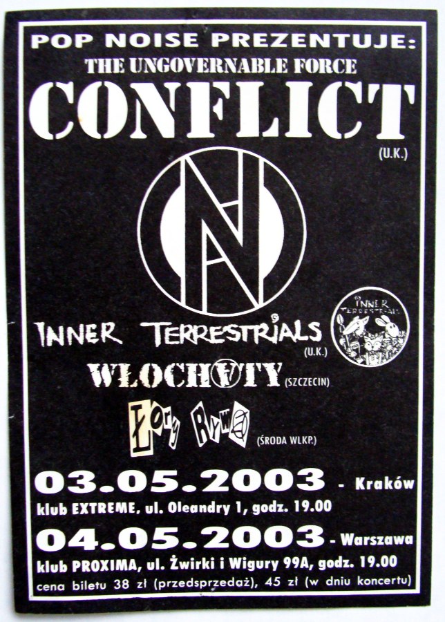 Conflict, Inner Terrestrials w Warszawie - 04.V.2003 Subhumanas - UK tour 1998 The Feeding of the 5000 - Steve Ignorant, Conflict, Flux, Zounds, Restarts... - Londyn 2007 Conflict, Kochise - France Tour 1994 Conflict - UK Tour 1994