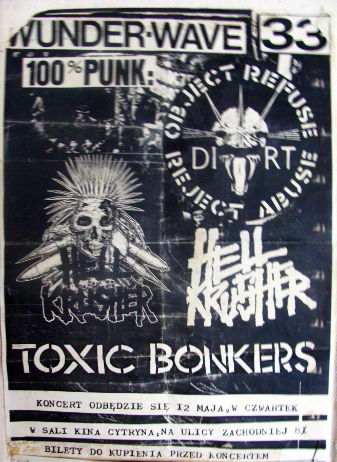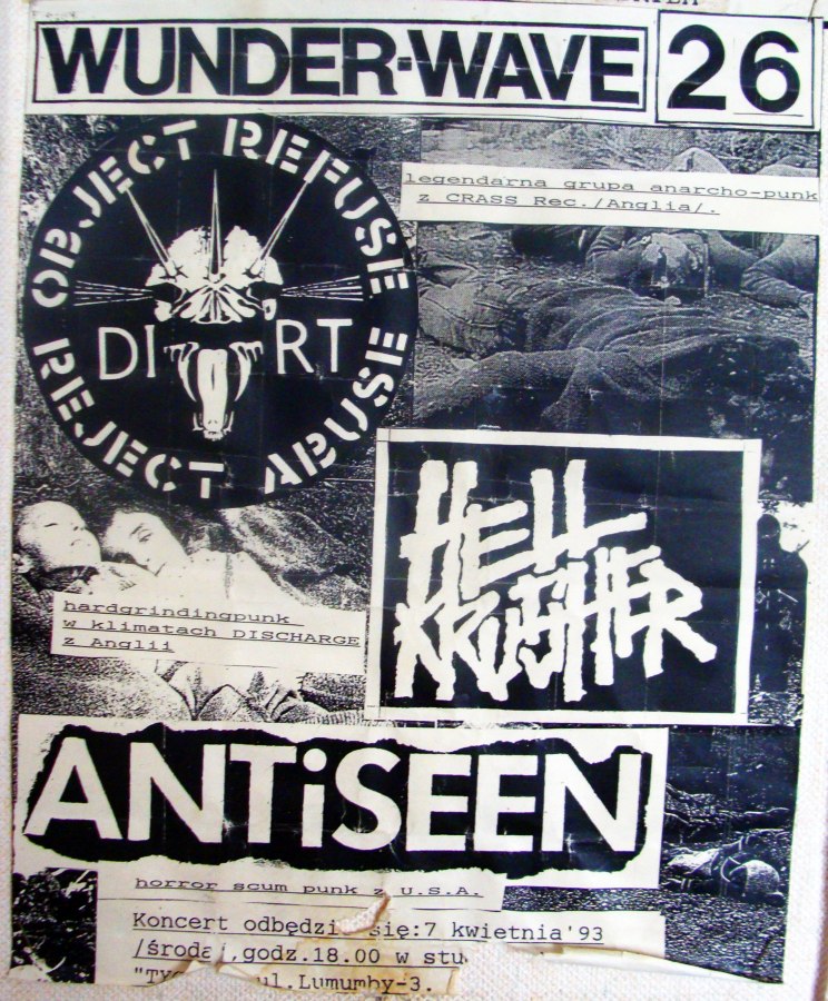 Blanks 77 z New Yorku w Pilonie - 29.04.1997. Org. Crack Dirt w Łodzi. Pierwszy raz anarcho punk z Crass Records w Polsce. Kilkuset punków w TOTALNYM amoku. Kto był ten wie - 1993. Org. Wunder Wave 26 Dirt drugi raz w Łodzi. Szaleństwo. Org. Wunder Wave 33 Koncert ku pamięci Staśka - Hybrydy, Warszawa, 1994 Academy in the UK - Conflict, Bristol, 2007