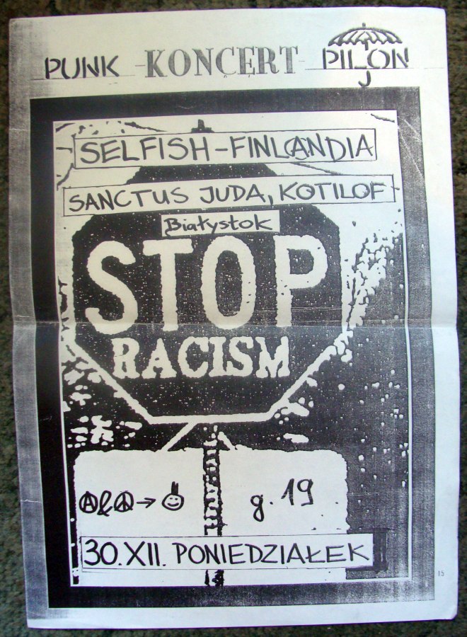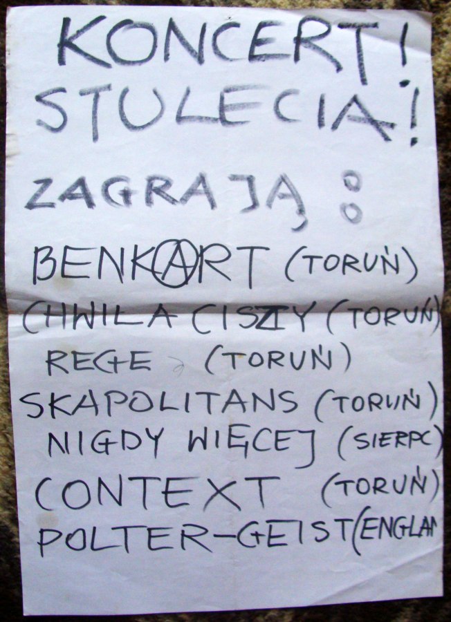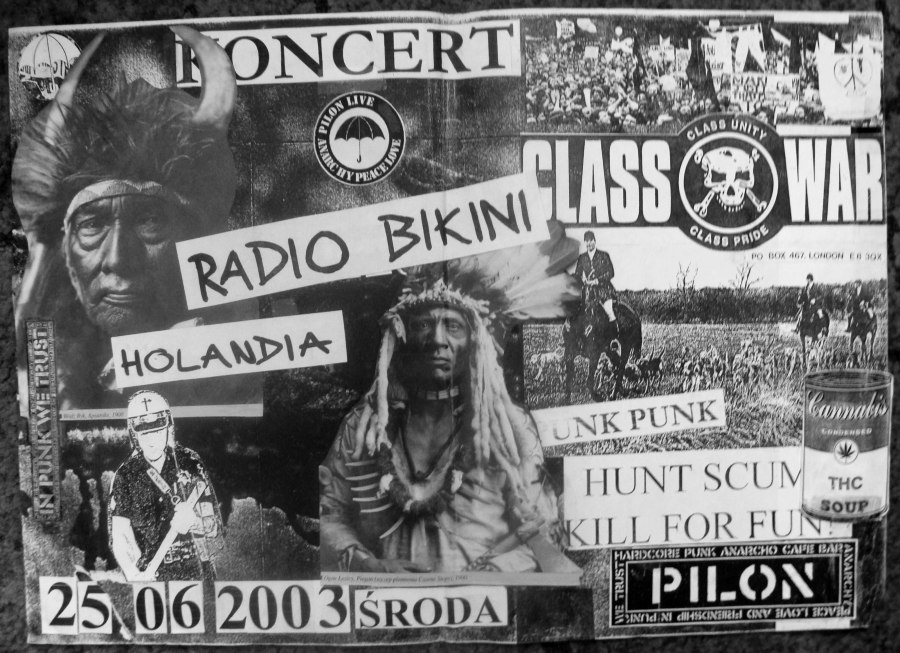 Po trochu | Otworzyłem stara szafę, nie otwieraną od bardzo dawna i zasypały mnie setki plakatów, zdjęć, ulotek, zinów, broszur... dość archiwalnych już dziś. Systematycznie fotki tych szpargałów będą pojawiały sie tutaj... Na początek trochę plakatów z koncertów które organizowaliśmy lub na których byliśmy... Benefit Party w PIlonie - kasa dla Micha Marchaba Europe - spotkanie w Pilonie. Org. chyba Kolektyw Autonomistów I.M.K.E - to miał być najlepszy koncert w Pilu, mistrzowska kapela - niestety nie dojechali. Org. Crack Sanctus Juda - Pilon, klasyczny koncert, klasyczne kapele. Org. Crack Oi Polloi - Szybki koncert zrobiony z dnia na dzień. Org. Crack (Błażej dzięki za plakat)